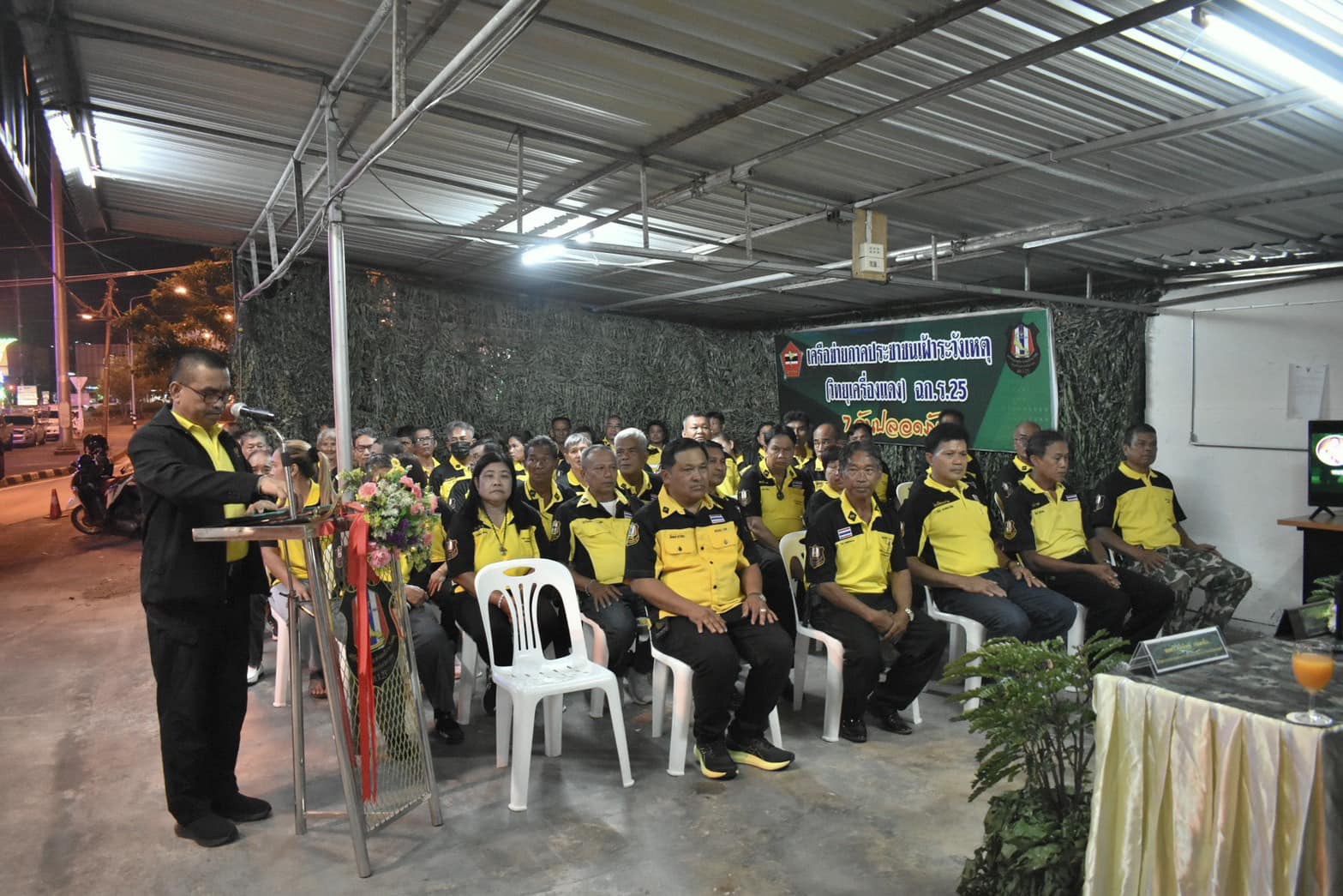 จากนั้น เวลา 1900 ลงพื้นที่พบปะและให้กำลังใจ เครือข่ายภาคประชาชนเฝ้าระวังเหตุ (วิทยุเครื่องแดง) ในการปฎิบัติหน้าที่ด้วยความเสียสละพร้อมทั้งเน้นย้ำถึงความร่วมมือระหว่างภาครัฐกับเอกชน ในการเฝ้าระวังและช่วยเหลือประชาชน
